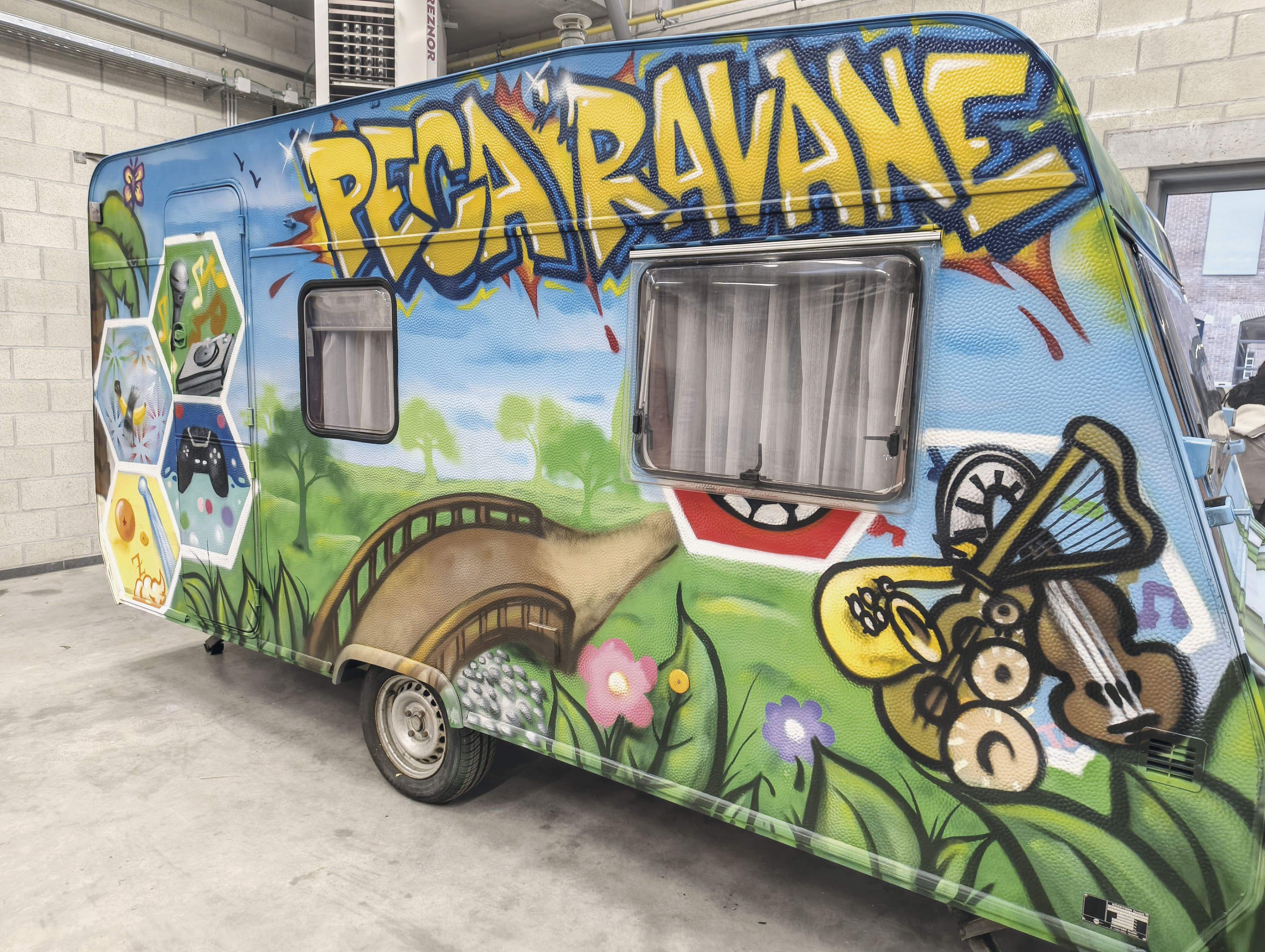 Ça y est, elle a réalisé ses premiers tours de roue officiels au sein du Collège Saint-Augustin d’Enghien. Enfin, les premiers tours de sa seconde vie. Elle, c’est la PECA’ravane. Un nom simple et génial à la fois pour désigner cette caravane itinérante et haute en couleurs graffée par des élèves issus de sept écoles (voir la liste ci-contre). Une œuvre d’art peu commune pour un projet tout aussi hors du commun mené comme son nom l’indique dans le cadre du PECA (Parcours d'éducation culturelle et artistique).